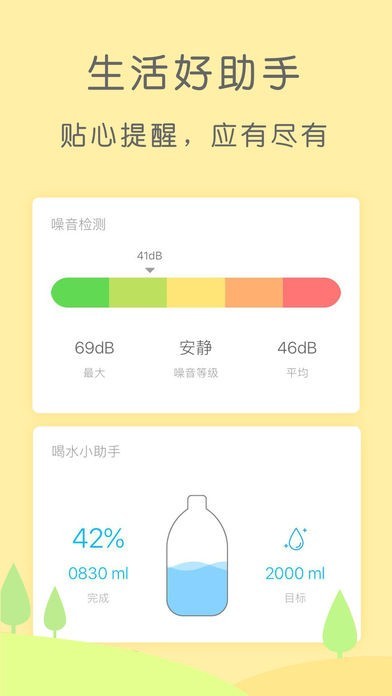 5、喝水小助手:每天定时喝水提醒,喝水量清晰记录,帮您养成生活好习惯;