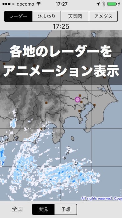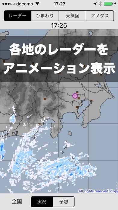 App Storeより引用雨が降りそうなとき、雨が降っているときは、予報よりもレーダーによる実況のほうが役に立ちます。