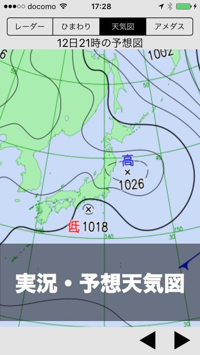 機能はレーダー、降水短時間予報、気象衛星画像(赤外)、天気図(地上実況図、地上予想図)、アメダスだけです。