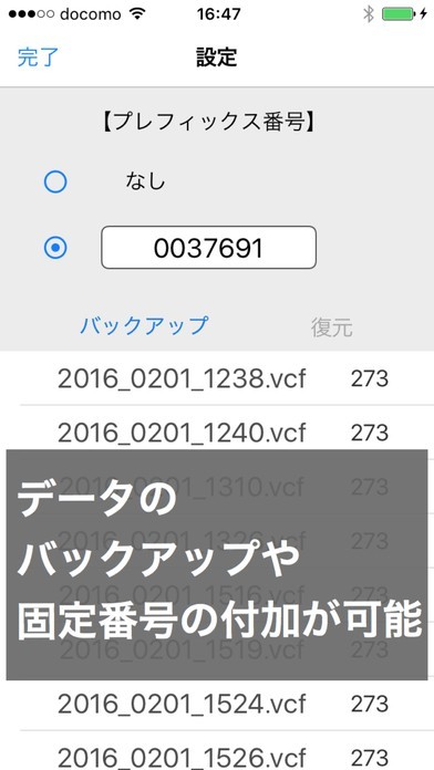 ContactEdit - グループ分け/プレフィックス番号/バックアップに対応した電話帳のスクリーンショット