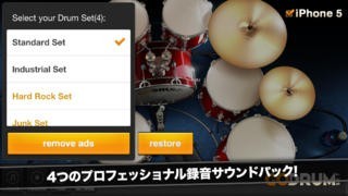App Storeより引用最も美しいドラムセットがアプリストアに登場しました。Go! Drum Setの紹介… モバイルロックスターになるのが簡単になりました!