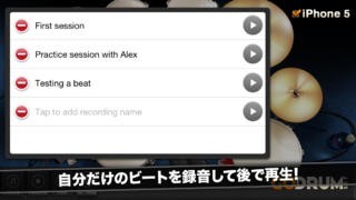 自分だけのドラムセッションやミュージックライブラリにあるお気に入りの曲にあわせて演奏したものを録音できます。Go! Drum Setで簡単にできます!