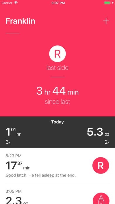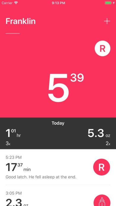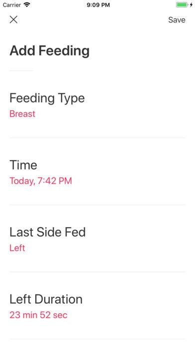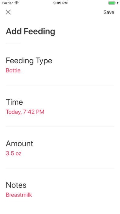 • Track all feedings - breast or bottle - as they happen or add a feeding later on