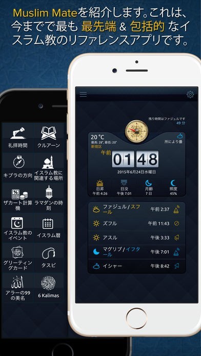 礼拝時間の通知機能やキブラコンパスを搭載