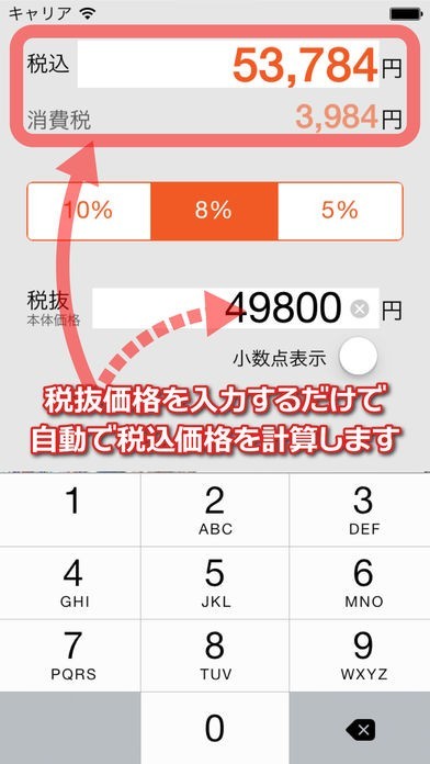 もう買い物で損はしない!税抜価格を入力するだけで税込価格が表示されるので、お得な商品を見逃さない!