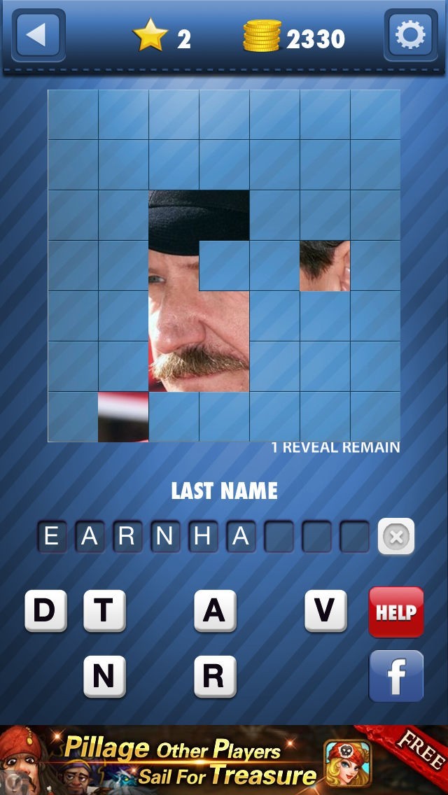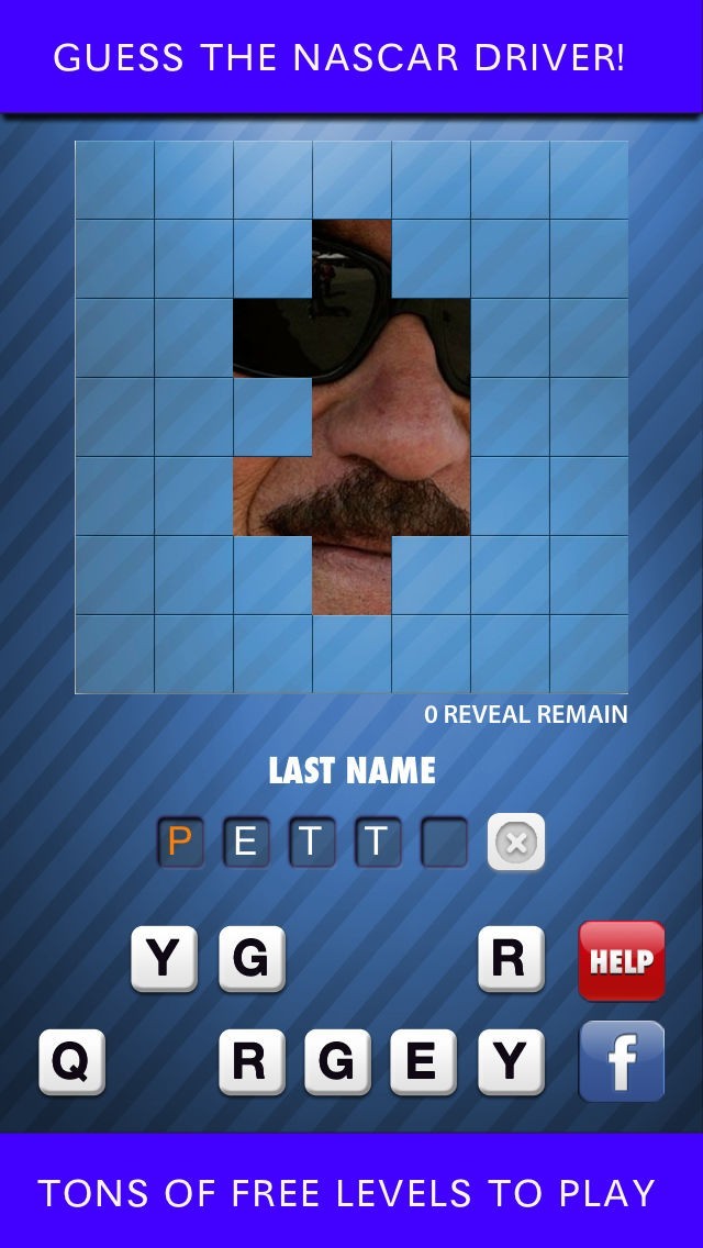 Have fun guessing the NASCAR driver by revealing letter blocks to uncover the picture!