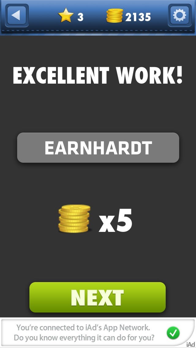 Any ways, if you are a fanatic you will LOVE this fun and addictive NASCAR trivia game!