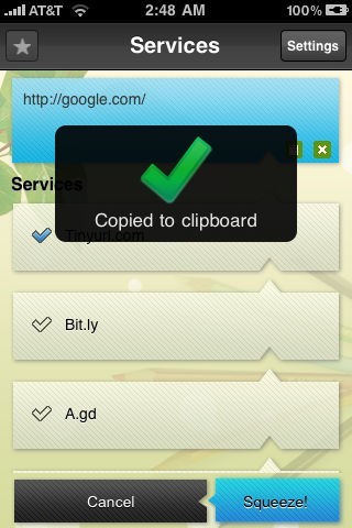 - Multiple services: tinyurl.com, bit.ly, a.gd, is.gd, and more in the future updates (Lite version only includes tinyurl.com and bit.ly)