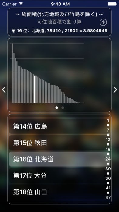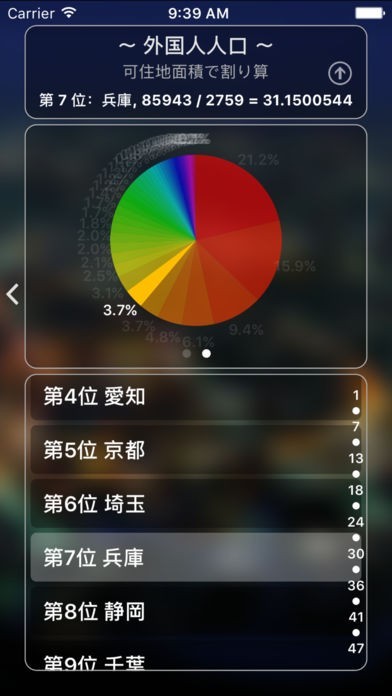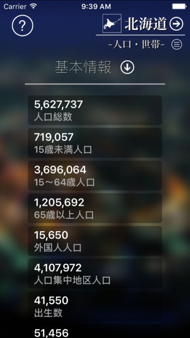 本アプリは総務省統計局2010年公表した「政府統計データ」を整理して、日本各都道府県の指標、数値(「人口・世帯」、「自然環境」、「経済基盤」、「行政基盤」、「教育」、「労働」、「文化・スポーツ」、「居住」、「健康・医療」、「福祉・社会保障」、「安全」、「市区編」)をテーブルやグラフとして提供しております。その上、各指標の都道府県のランキングも作りました。