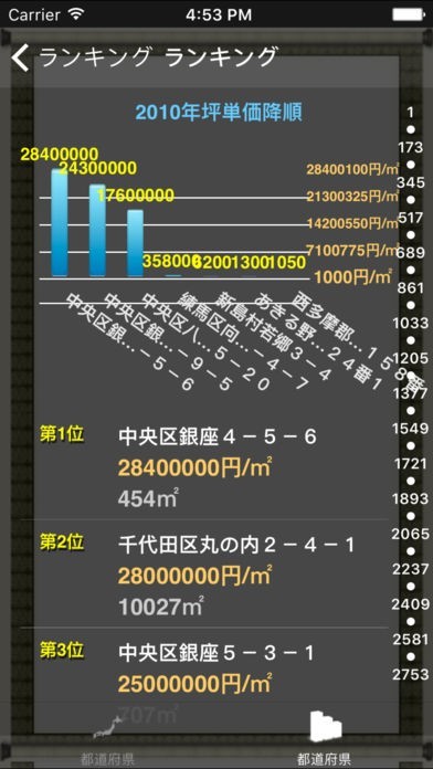 日本全国のさまざまなエリアの土地価格を降順に表示することができます。最も高い場所が良いというわけではなく、自分の予算に合わせて選択することがポイントとなります。