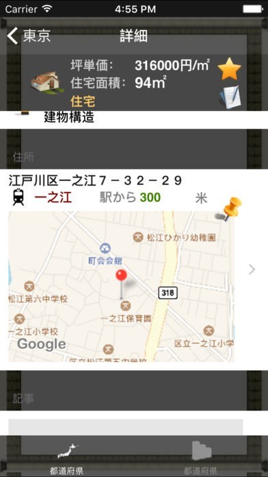 実際に土地の購入を検討している方におすすめのアプリです。坪単価に加え、住宅価格も教えてくれるので、非常に便利です。最寄駅も表示されるため、具体的な土地の検索にもおすすめです。
