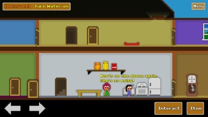 App Storeより引用After an annoying day at school, you just want some peace and quiet. But everything at home is so noisy! Mr. Peabody is obsessively mowing his lawn, Dad is channel surfing and Mom is yapping on the phone. Your pesky kid brother won't go to bed, and even your pet kittens are driving you crazy! Explore, interact with your environment and solve puzzles.