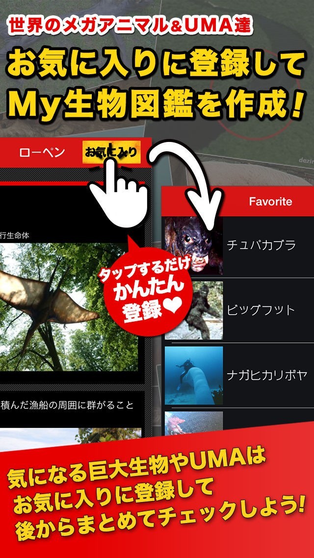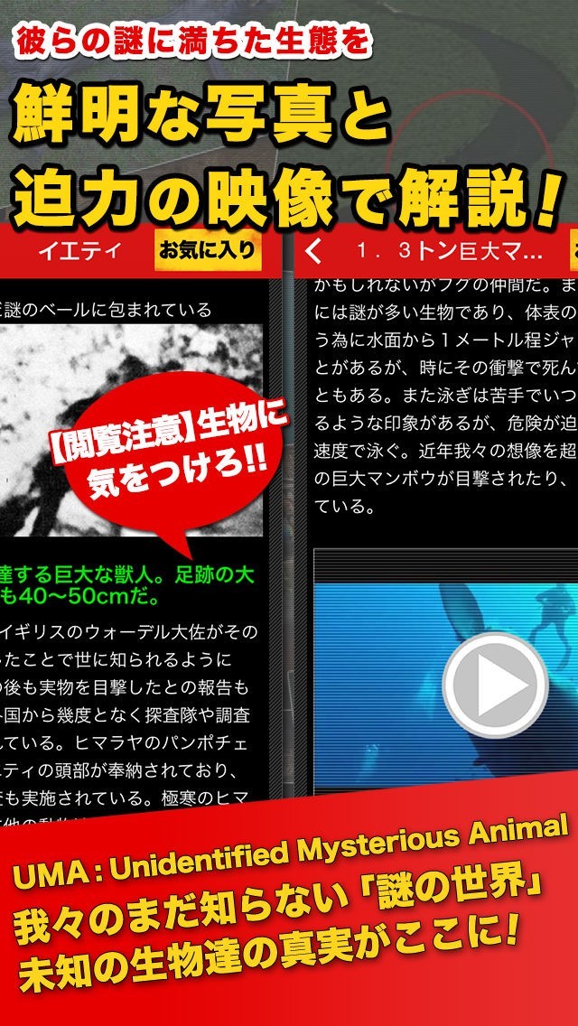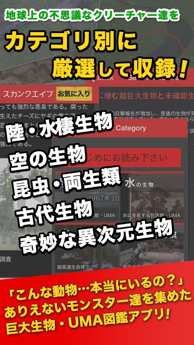 様々な未確認生物についての情報を閲覧することができるアプリ!