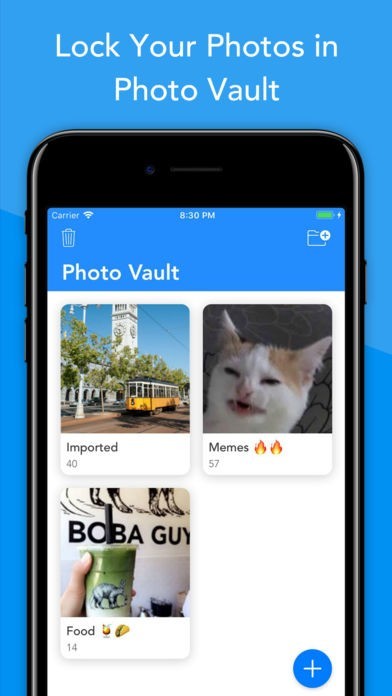 - Fully encrypts photos in Photo Vault