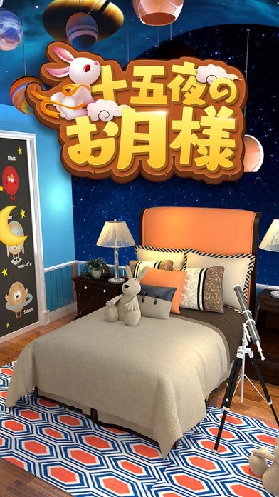 十五夜のお月様は、ウサギが出てくるおとぎ話の世界で謎解きを行います。中級レベルの脱出ゲームで、かわいいウサギに癒されます。夢の中に迷い込んだような気分になれます。