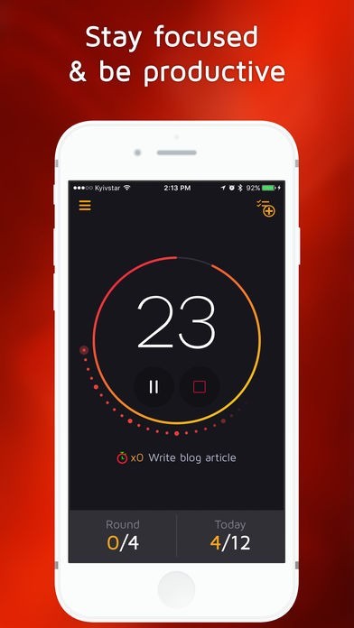 • Full control on the Focus timer - start, pause, resume, stop with just a single tap.