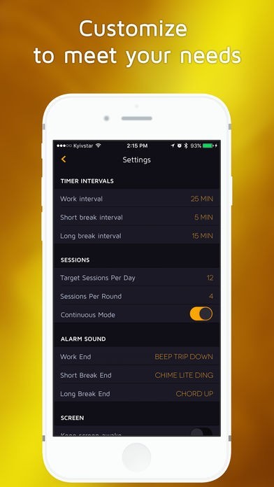 Focus Watch perfectly works in background mode, so you can start the timer and switch to any other app - you'll be notified with an alarm when the session ends.