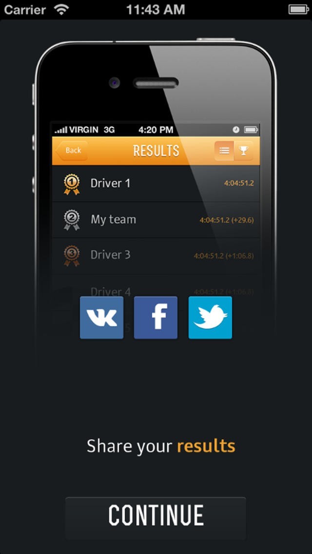 上限なしでタイムアタックの記録をアプリに保存することが出来るようになっているので、何人ものレーサーが参加するタイムアタックでも一つのスマートフォンで記録をとることができます。