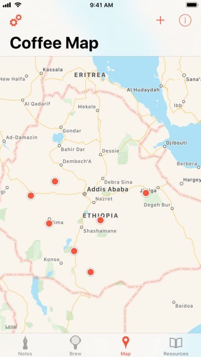 Open a map to see pins spread across the world, showing everywhere you've enjoyed coffee from.