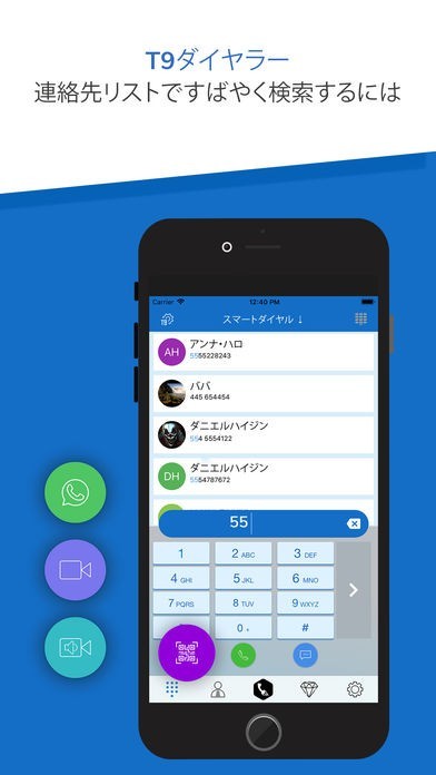 Smart T9 DialerでQRスキャナを選択するか、WhatsApp、FaceTime Audio、FaceTime Videoをクイックアクセスオプションとして設定できます。有効な電話番号がQRコードにある場合、QRスキャナーが直接呼び出すか、QRコードごとにデータを表示します。
