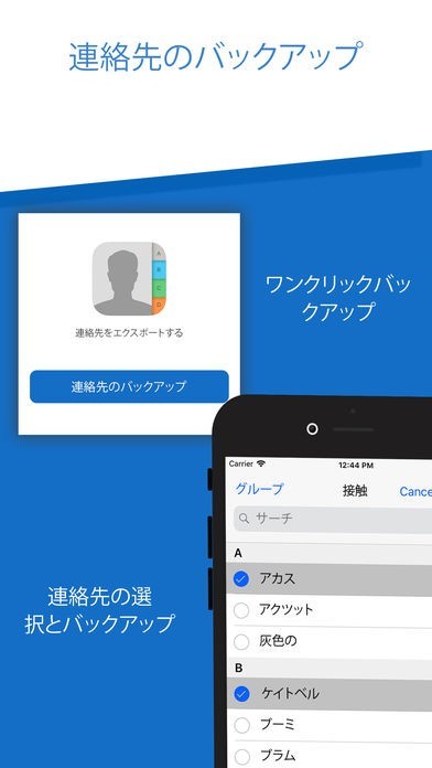 ▶ コンタクトブックオプションが追加され、VCFファイル内のすべてのコンタクトまたは選択されたコンタクトをバックアップし、