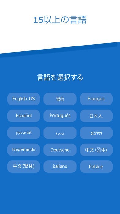 ヒンズー語、アラビア語、オランダ語、ドイツ語、中国語(簡体字)、中国語(繁体字)、イタリア語、ポーランド語、ポルトガル語
