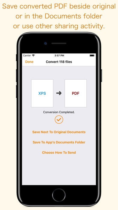 Note: XPS-to-PDF is a standalone application running natively to open and convert XPS and OXPS documents securely right on your iOS device.