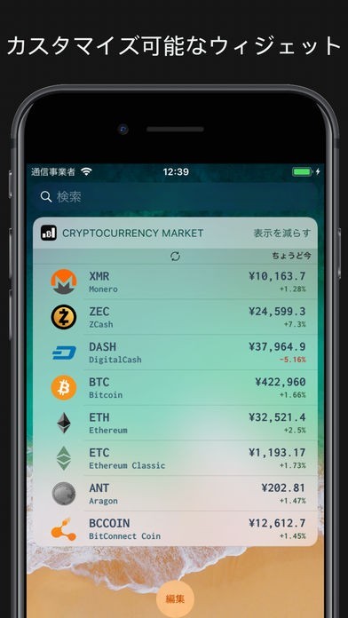 ウィジェットを利用すればコイン価格をいつでも簡単にチェックできるようになります。ウィジェットはカスタマイズできるので、自分が投資しているコインだけを表示させることができます。