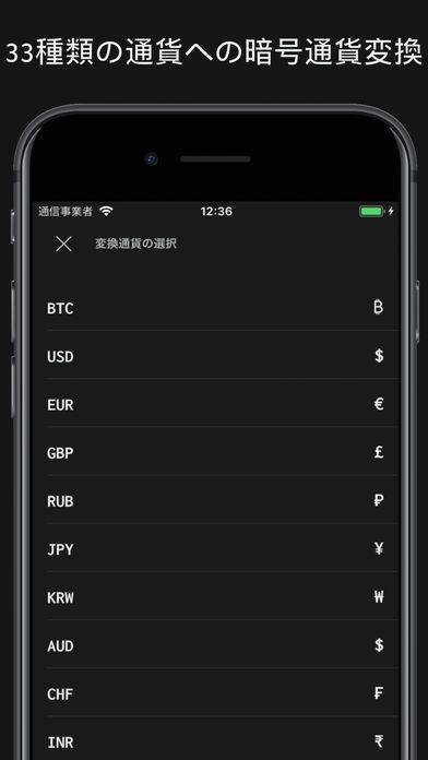 所有しているコインを33種類の通貨に換算して計算できます。ビットコインをUSD表示にもJPN表示にもできるということです。様々な資産をドルや円、ユーロなどに統一して換算すれば分かりやすくなります。