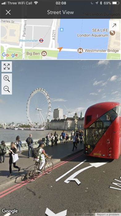 指定したピンや検索結果、ブックマークした場所からストリートビューにアクセスできて便利!