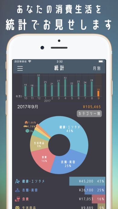 お金の使い道をグラフ化して視覚的にお金を管理できる