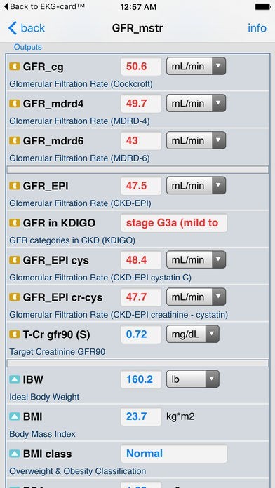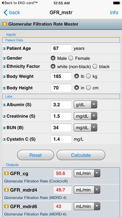 App Storeより引用The NephroCalc™ App includes most formulas and equations used in the daily assessments of patients with kidney disease. It incorporates more than 100 equations and innovative MultiCalx™ Master panels for combined calculations, assuring convenience and accuracy.