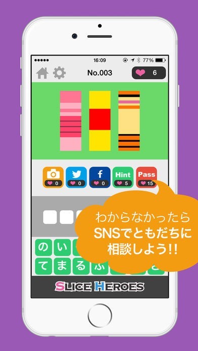 「Slice HEROES(スラヒー) - 人気の暇つぶしアニメクイズ」は人気アニメのキャラクターをスライスし、色だけで表示するクイズアプリです。スライスされたキャラター達は、色だけなのに特徴的。仲間とワイワイ騒ぎながらどのキャラクターか当てることもできます。クイズとして出題されたキャラクターが判らない時には、友達や仲間にヒントを出して貰って正解を目指しましょう。シンプルなクイズとして暇つぶしにももちろん最適。単純に遊びたいクイズアプリを探している人におすすめです。
