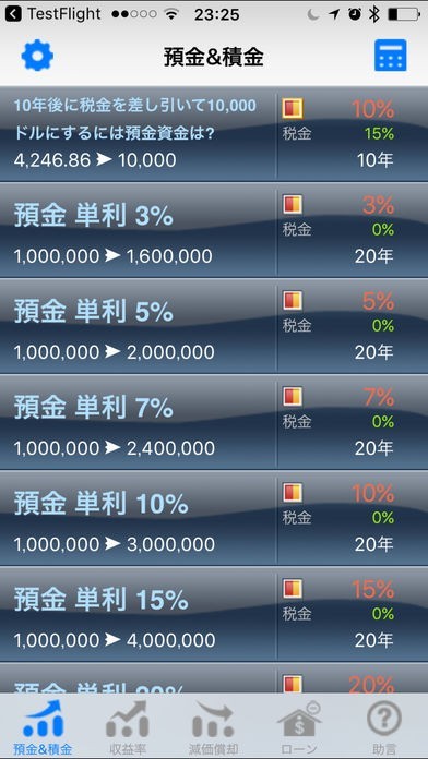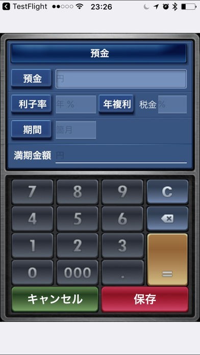 預金でもローンでも金利計算は、目的によって計算式が様々あり難解なように感じられますが、そのような計算式を知らなくても、アプリ内で数値を入力していくだけで必要な計算が出来ます。