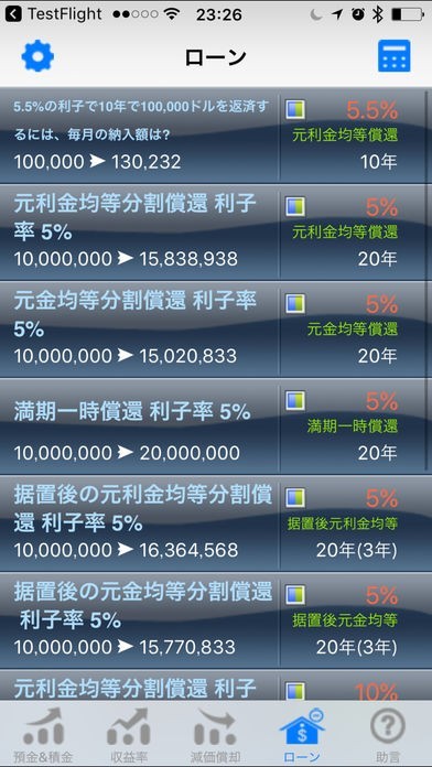 5つの種類のローン利子計算に対応