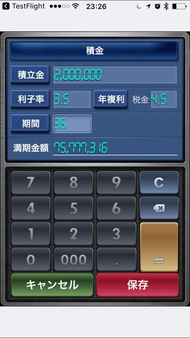 積立金額の計算が難しくて分からない。そんなときはアプリに計算してもらいましょう。毎回の積立金、金利、期間などを入力すれば、満期の金額がすぐに表示されます。空き時間など片手間でも計算できます。
