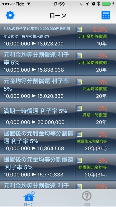 1つのアプリで5つのローン種類を計算!