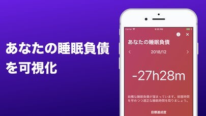 日々の睡眠記録からあなたがどのくらい睡眠負債が溜まっているのかをアプリでバロメーターにします。睡眠負債を貯めないことが健康的な生活を送るポイントです。