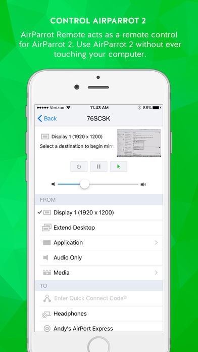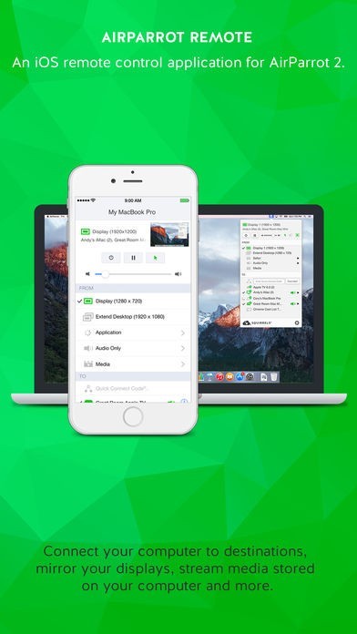 「AirParrot Remote」を使えば「AirParrot 2」がワイヤレスで利用できるようになります。接続機器がなくてもOKです。ディスプレイをミラーリングすることで、デスクトップ画面の内容を拡げることができます。