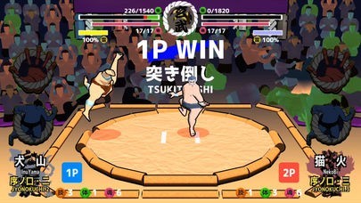 いろんなキャラでスモウレスリングを行え楽しい。座布団が飛んでくるなど演出も良いですね。