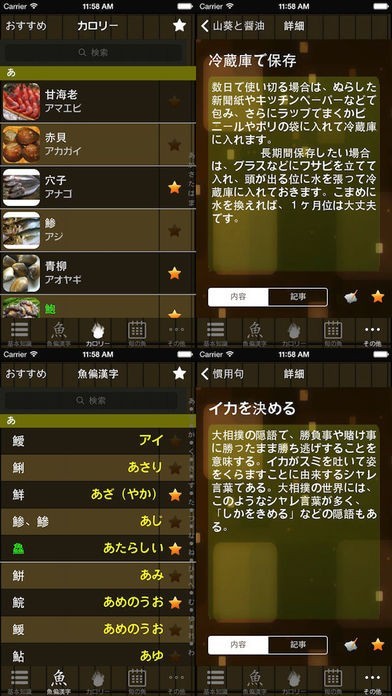 季節の旬の魚の情報が豊富なので、調べたいときに手軽に調べることができ便利です。
