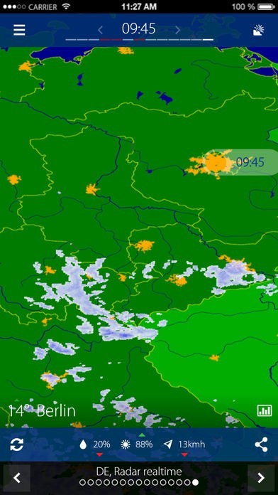 - Radarbilder für den Großteil Europas, alle 15 Minuten aktualisiert.