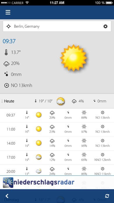- Interaktiv: Teilen Sie Ihr Wetter via Facebook und Twitter.