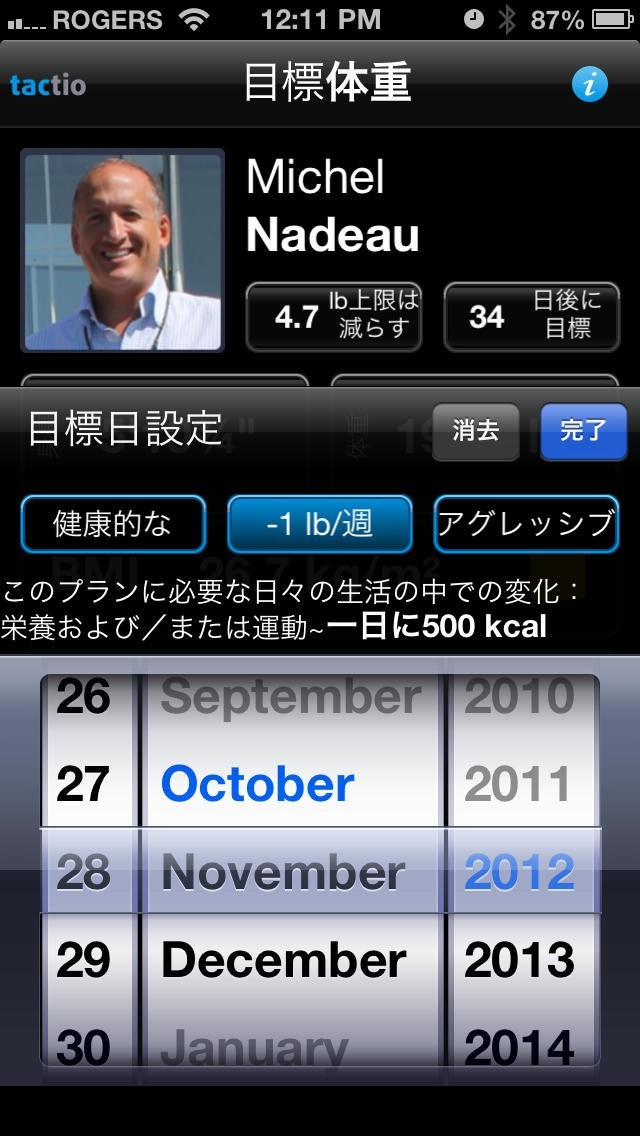 目標体重の設定機能搭載。目標数値を入力するだけで1日あたりに落とすべき体重を教えてくれる!