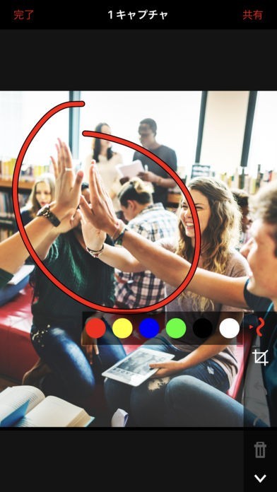 • 画像は外出先でも内蔵の描画ツールで注釈を追加でき (iPhoneのみ)、TechSmith Relay を経由して同僚と共有できます