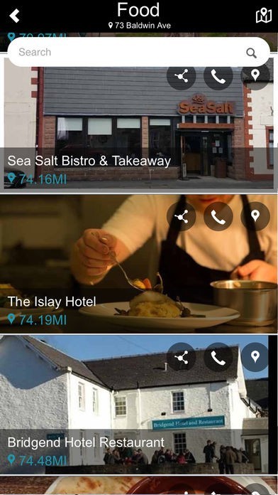 アプリには島にある飲食店の情報が収録されています。レストランなどの飲食店を探してお店を選びましょう。営業時間やロケーションも調べられるので、現地で役立つこと間違いなしです。