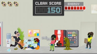 オフィスを掃除していると次々と侵略者がやってきます。ステージごとに用意された様々なギミックと手元のモップを組み合わせてできるだけ多くの侵入者を排除することが目的となります。