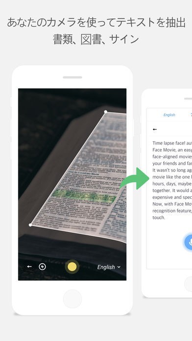 外国語で書かれている文書などをカメラで撮影して内容を抽出できるので、より効率的に英語長文を読み込んだり、個々の単語の意味や発音などを調べてまとめることができます。