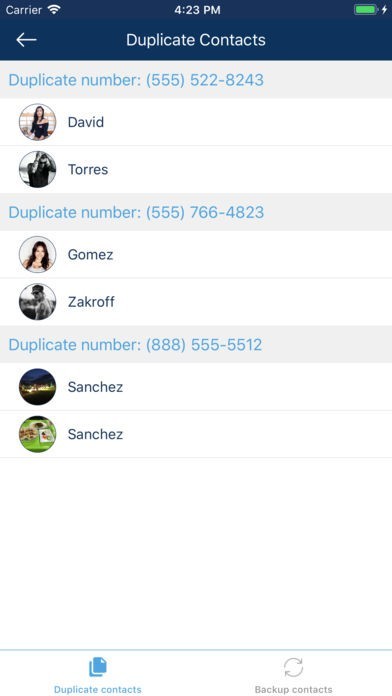 √ Delete duplicate contacts
