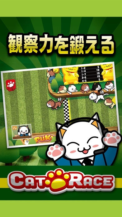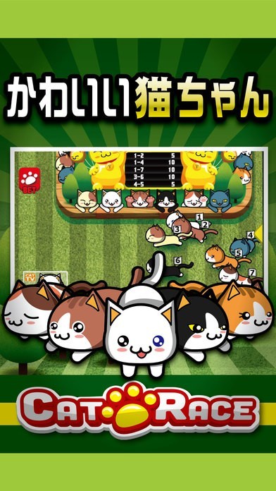 どの猫が優勝するか予想してコインを掛けて遊ぶネコ好きの為のギャンブルゲームアプリ